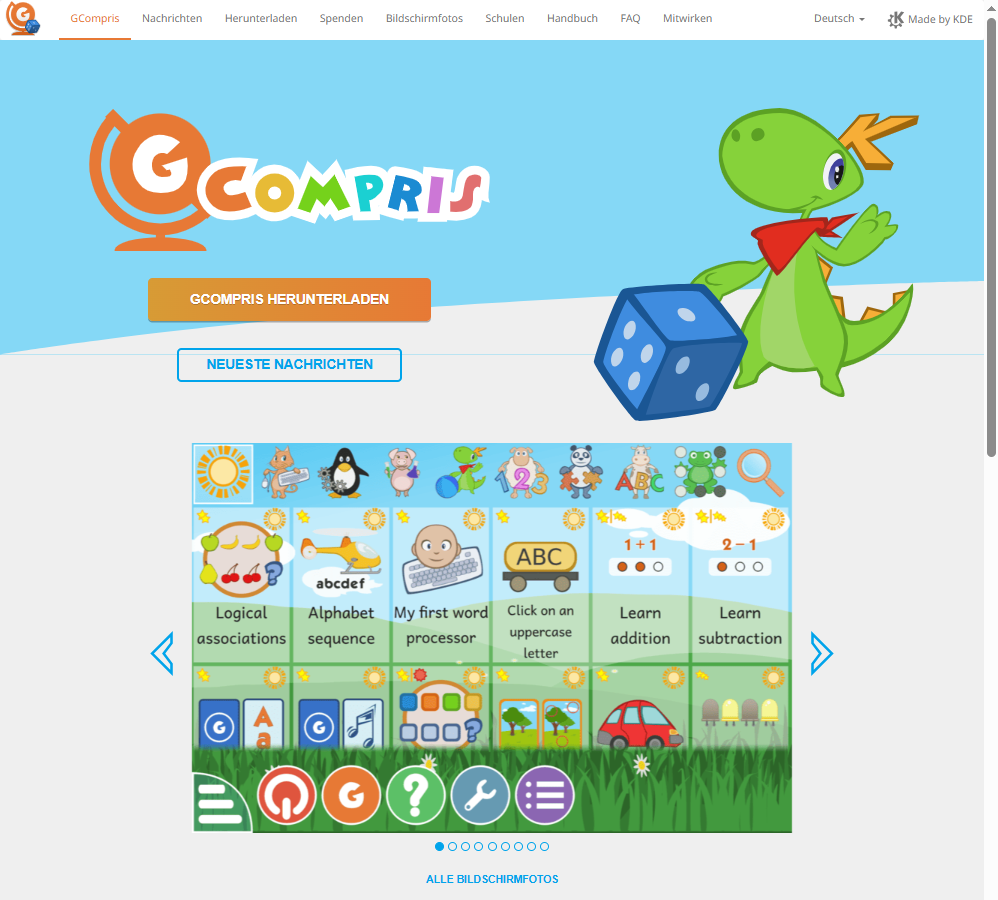 Das GCompris-Projekt wird bereitgestellt und entwickelt von der KDE-Community.