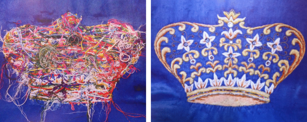Mein Leben ist ein Webstück von meinem Gott gemacht. Nicht ich such aus die Farben, Er tut es mit Bedacht. Oft webt er ein auch Kummer, und ich vergesse dann, dass Er das echte Bild sieht, ich nur, was unten dran.